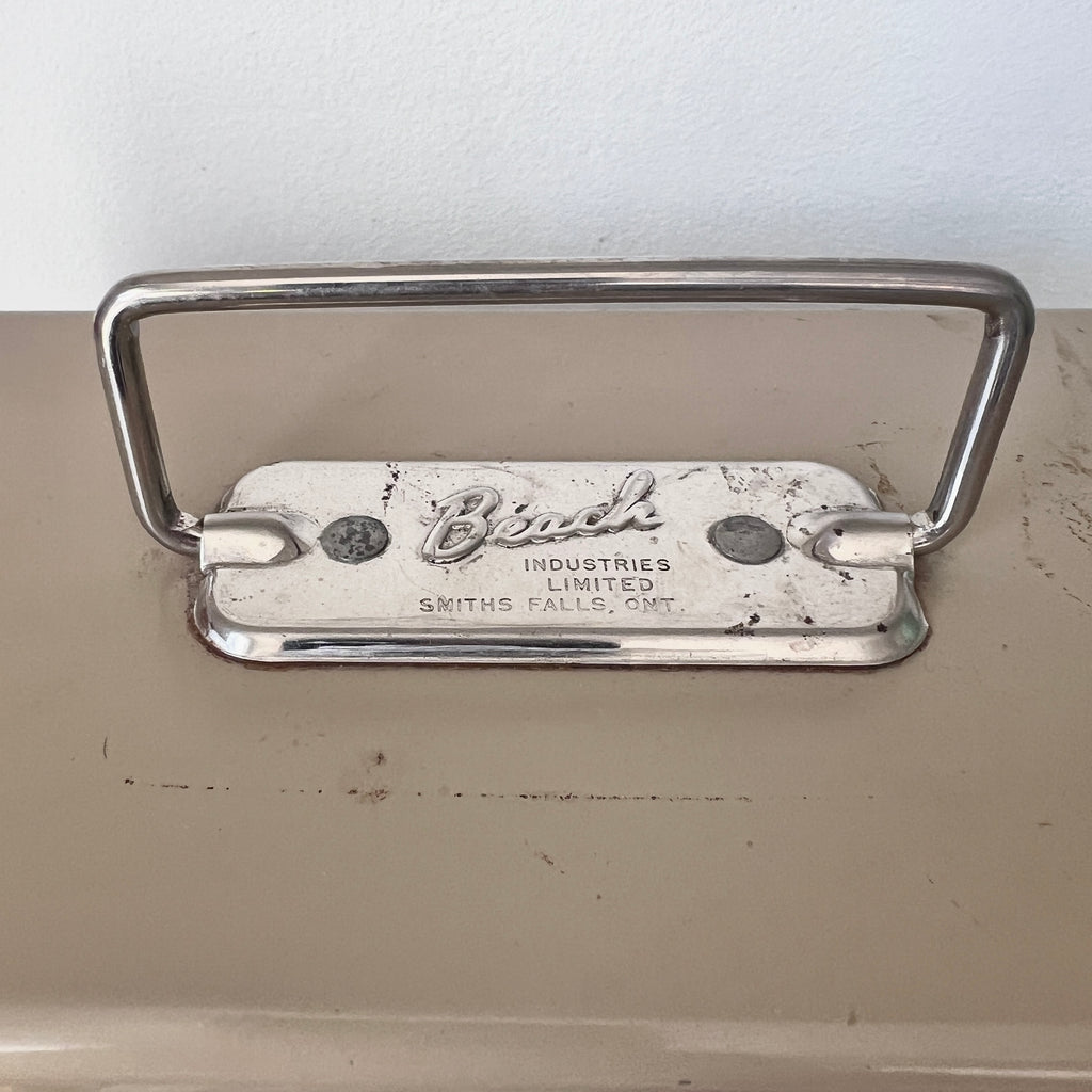 This sweet lil 1960s toolbox was made in Smiths Falls Canada and is in overall quite nice condition. Great for storing just about anything as nice, functional decor or use as a lunchbox, makeup case or whatever your heart desires!